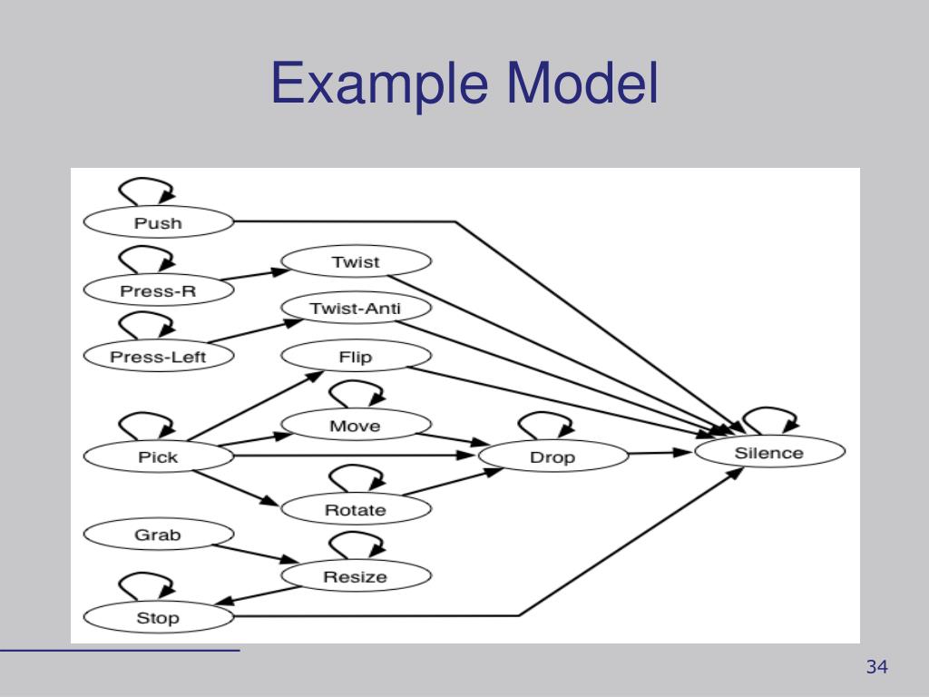 Model Multimodal Gestures • Low-level gesture as Gesture Words 3 classes: static, dynamic, parameterized • High-level gesture Sequence of GWords • Bigram model to capture constraints