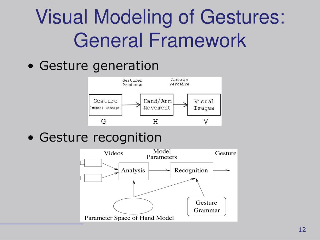 Visual Modeling of Gestures: General Framework • Gesture generation • Gesture recognition