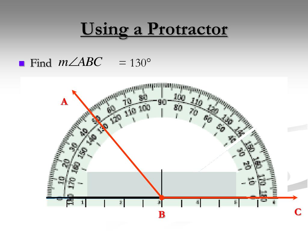 The MEASURE of is written as . • APROTRACTORcan be used to approximate the measure of an angle.