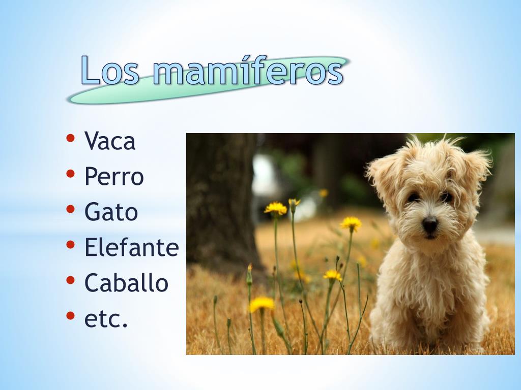 Los mamíferos Vaca Perro Gato Elefante Caballo etc.