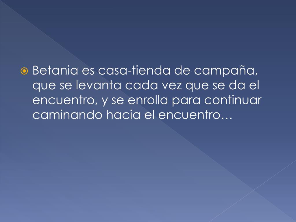 Betania es casa-tienda de campaña, que se levanta cada vez que se da el encuentro, y se enrolla para continuar caminando hacia el encuentro…
