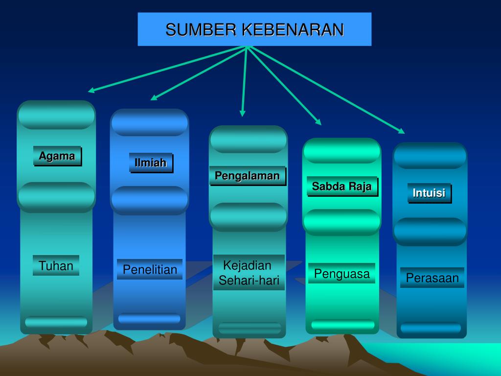 SUMBER KEBENARAN Agama Ilmiah Pengalaman Sabda Raja Intuisi Kejadian Sehari-hari Tuhan Penelitian Penguasa Perasaan