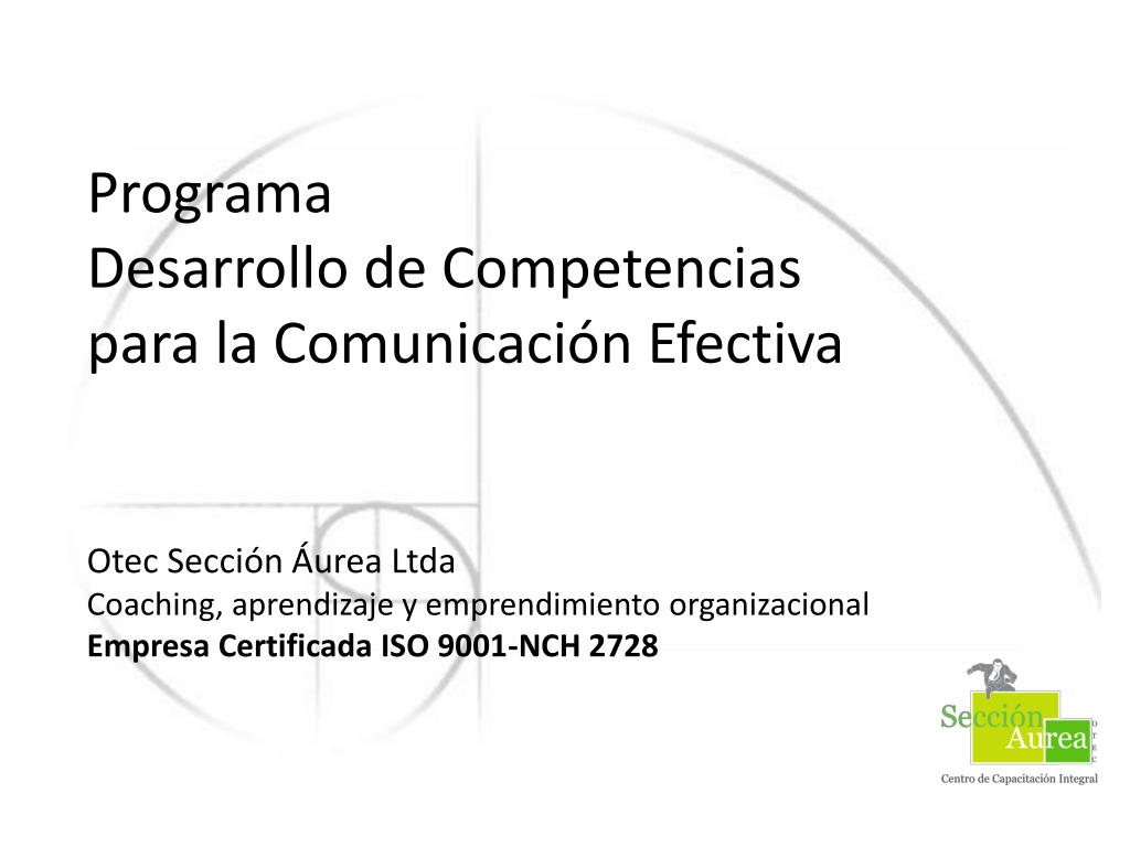 Programa Desarrollo de Competencias para la Comunicación Efectiva Otec Sección Áurea Ltda Coaching, aprendizaje y emprendimiento organizacional Empresa Certificada ISO 9001-NCH 2728