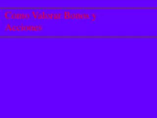 Como Valorar Bonos y Acciones. Corporate Finance Ross Westerfield Jaffe. Sixth Edition. Contenido. 1 Definición de Bono 2 Como valorar los bonos 3 Conceptos básicos de Bonos 4 El Valor Presente de las acciones comunes