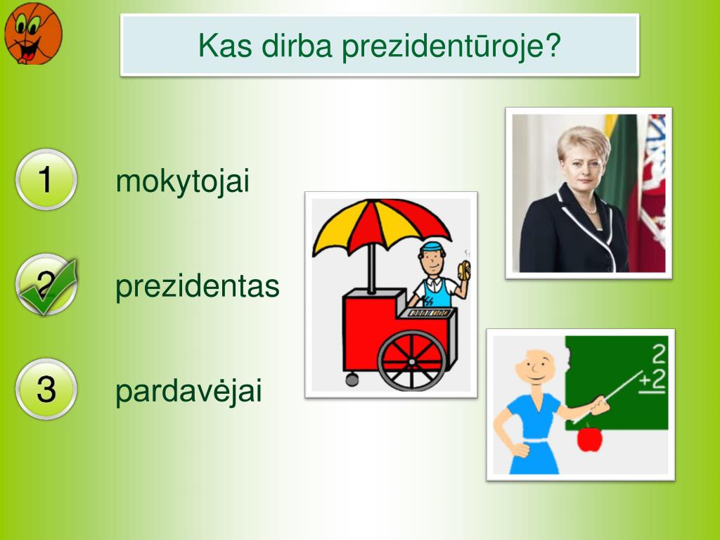 Kas dirba prezidentūroje? mokytojai prezidentas pardavėjai