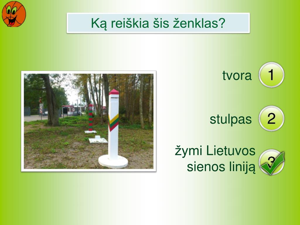 Ką reiškia šis ženklas? tvora stulpas žymi Lietuvos sienos liniją