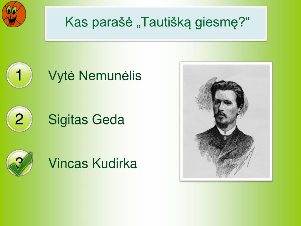 Kas parašė „Tautišką giesmę?“ Vytė Nemunėlis Sigitas Geda Vincas Kudirka