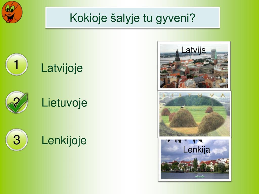 Kokioje šalyje tu gyveni? Latvija Latvijoje Lietuvoje Lenkijoje Lenkija