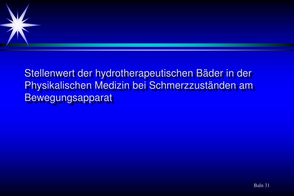 Stellenwert der hydrotherapeutischen Bäder in der Physikalischen Medizin bei Schmerzzuständen am Bewegungsapparat