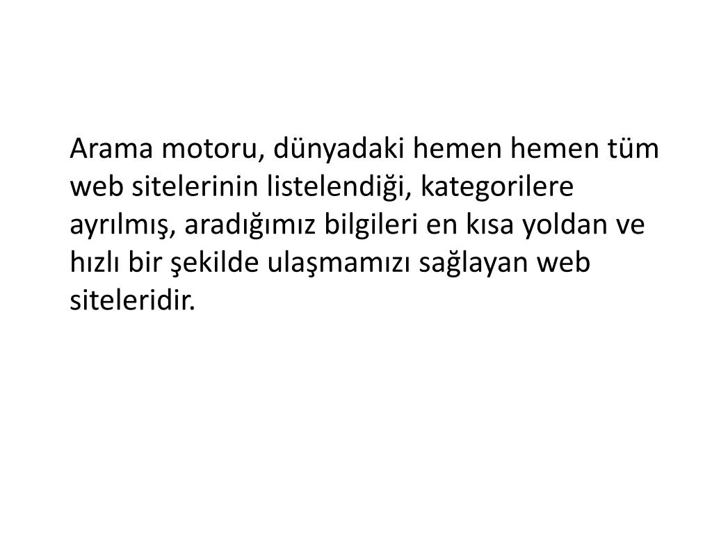 Arama motoru, dünyadaki hemen hemen tüm web sitelerinin listelendiği, kategorilere ayrılmış, aradığımız bilgileri en kısa yoldan ve hızlı bir şekilde ulaşmamızı sağlayan web siteleridir.