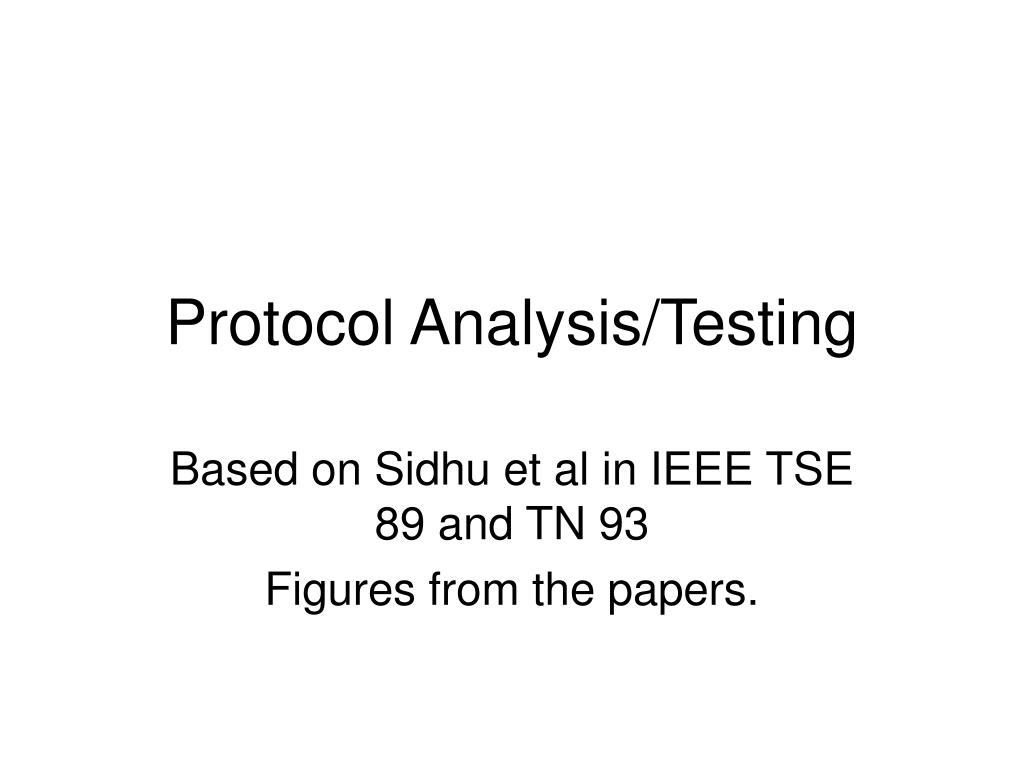 Protocol Analysis/Testing Based on Sidhu et al in IEEE TSE 89 and TN 93 Figures from the papers.