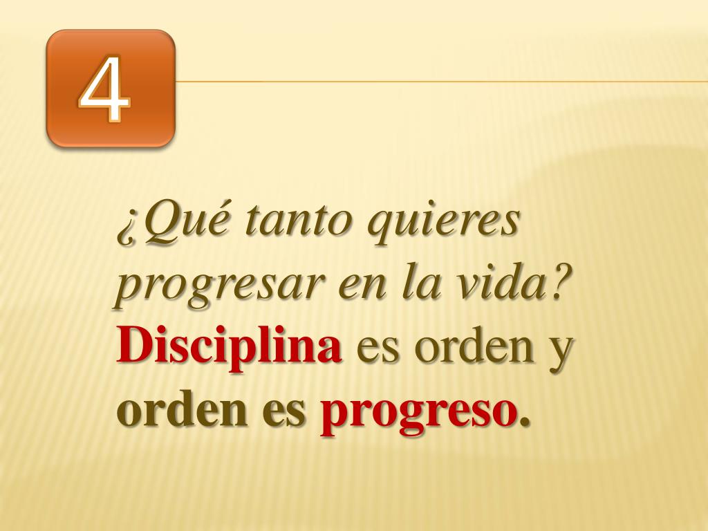4 ¿Qué tanto quieres progresar en la vida? Disciplina es orden y orden es progreso.